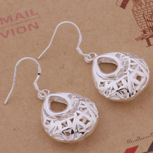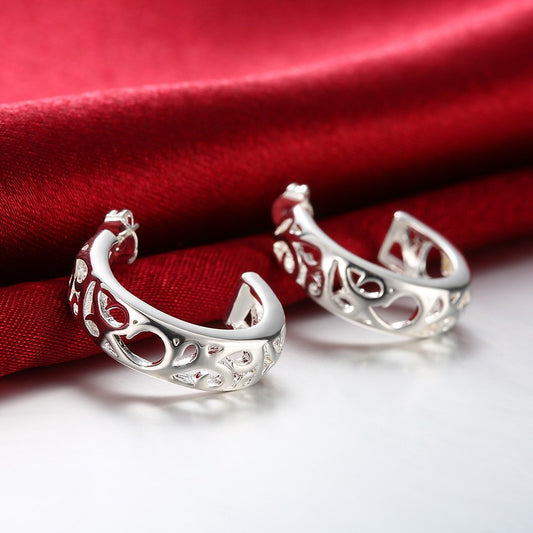 Silver Cut Out Fancy Puffed Silver Heart Earrings For Woman