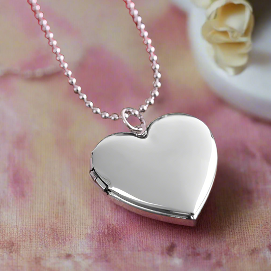 Adoration Engravable Smooth Heart Silver Locket Necklace for Women | Personalized Keepsake Jewelry