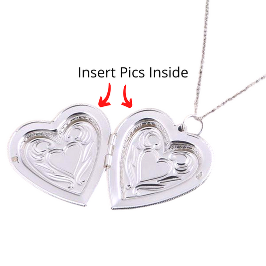 Lovely Embossed Oversize Silver Heart Locket Necklace for Woman