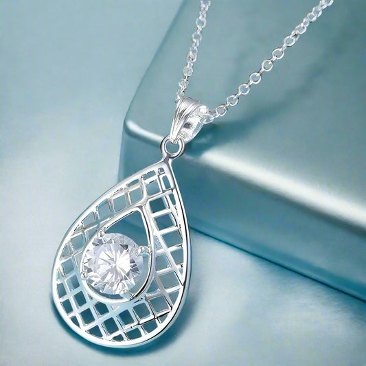 Ornate Pear Drop CZ Sterling Silver Necklace