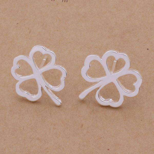 Four Leaf Clover Silhouette Silver Necklace and Earrings Set For Woman