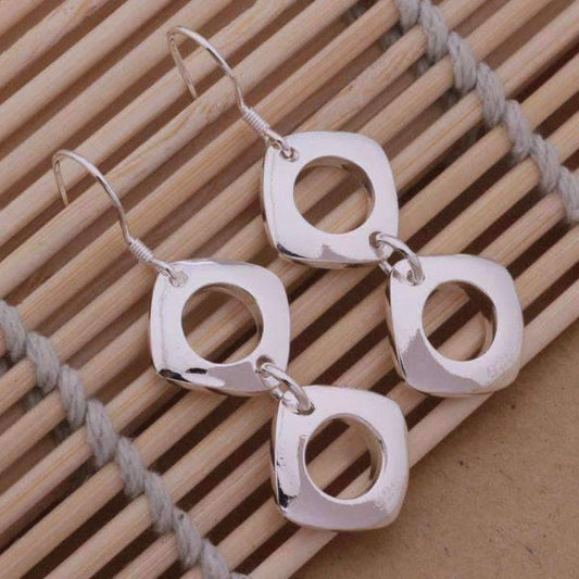 Triple Strand Silver Beaded Chains French Hook Earrings for Women