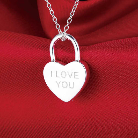 I Love You Heart Shaped Padlock Silver Necklace