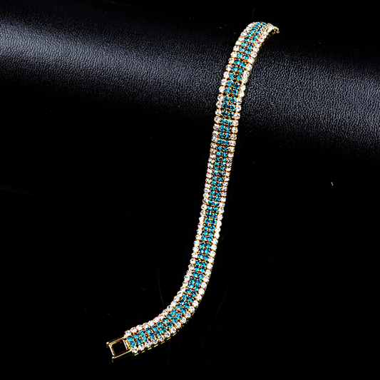 14K Yellow Gold Plated Deep Aqua Four Strand Gold and CZ Tennis Bracelet for Women