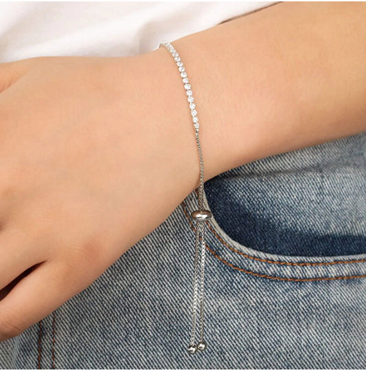 Little Luxuries 14K White Gold Plated Adjustable Stopper CZ Lariat Tennis Bracelet for Women