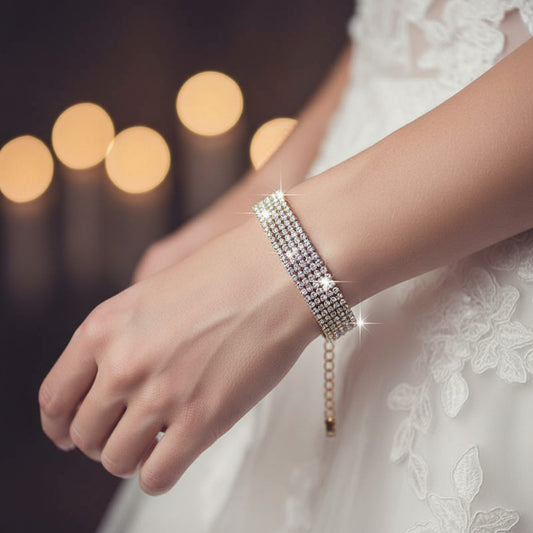 Hollywood Glam 18K Yellow Gold Plated Five Strand Gold and CZ Bracelet for Women