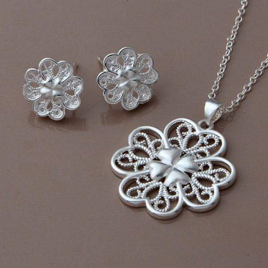 Celtic Hearts Silver Necklace and Earrings Set For Woman