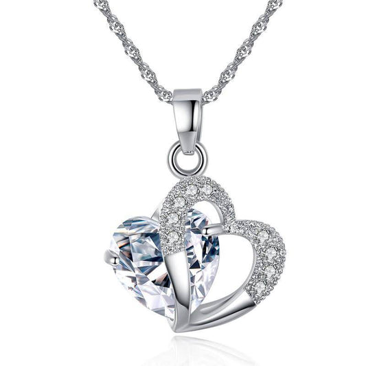 Austrian Crystal Heart Necklace and Earrings Set for Women