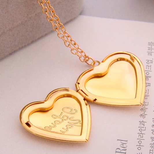 I Love You Yellow Gold Heart Locket Necklace For Woman