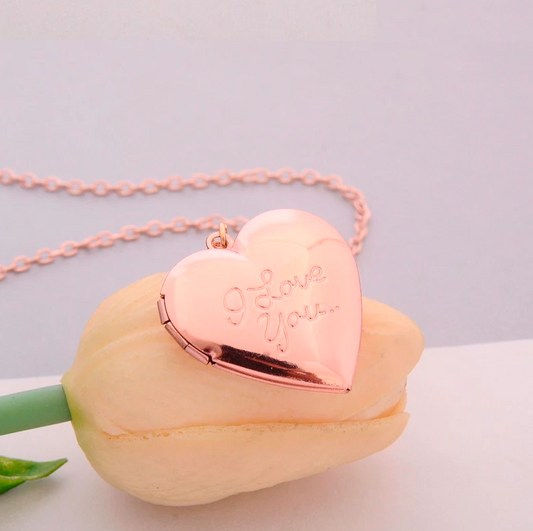 I Love You Rose Gold Heart Locket Necklace For Woman