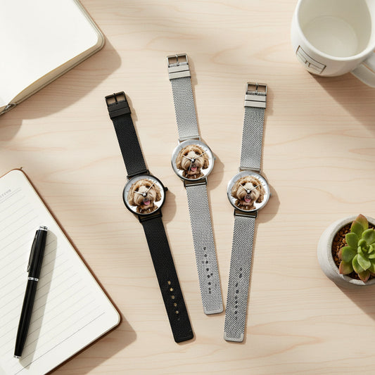 Fashion Ultra-Thin Stainless Steel Quartz Watch with Cute Puppy Dog Design