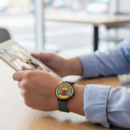 Fashion Ultra-Thin Stainless Steel Quartz Watch with French Bulldog Puppy Design