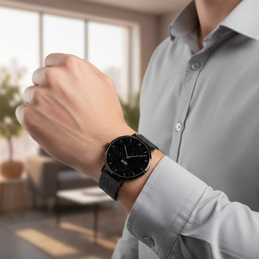 Fashion Ultra-Thin Stainless Steel Quartz Watch with Starry Design