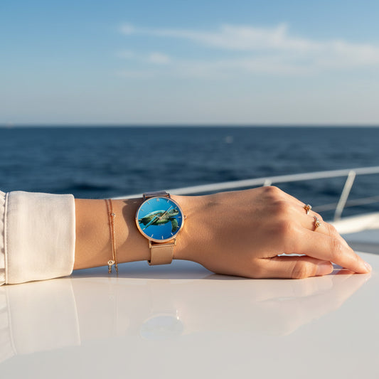 Sea Turtle Ultra-Thin Quartz Watch – Stainless Steel Ocean Dial – Silver, Black & Rose Gold