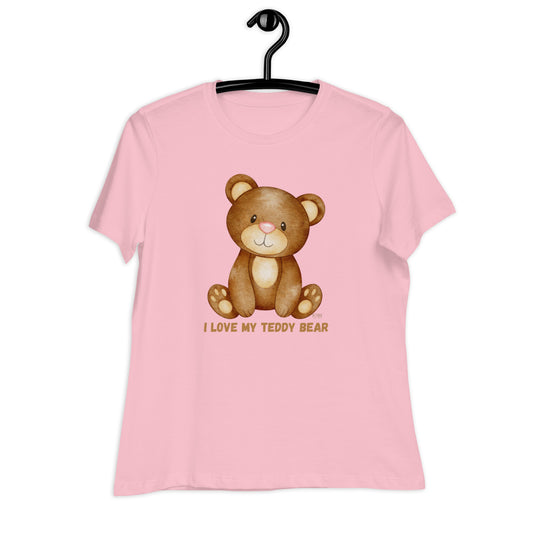 Women's Relaxed Soft & Smooth Premium Quality T-Shirt I Love My Teddy Bear Design by IOBI Original Apparel