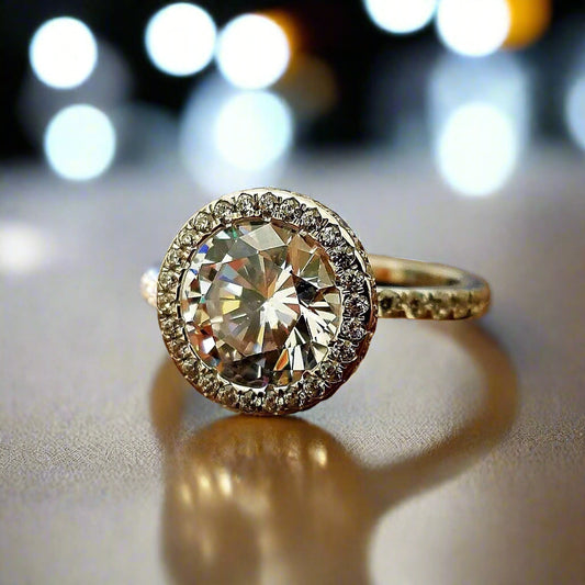 Evangeline 4CT French Pavé Halo In Decorative Crown OB Simulated Diamond Ring for Women Bridal Engagement Wedding Anniversary Gift