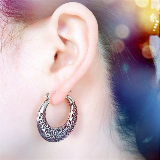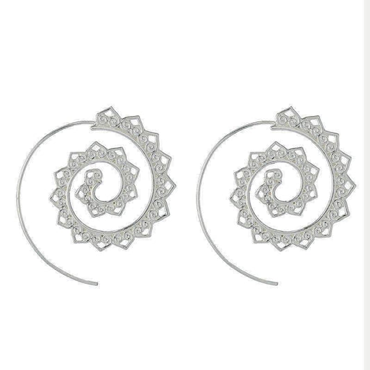 Eternal Ornate Spiral Hoop Earrings in Silver or Gold Tone