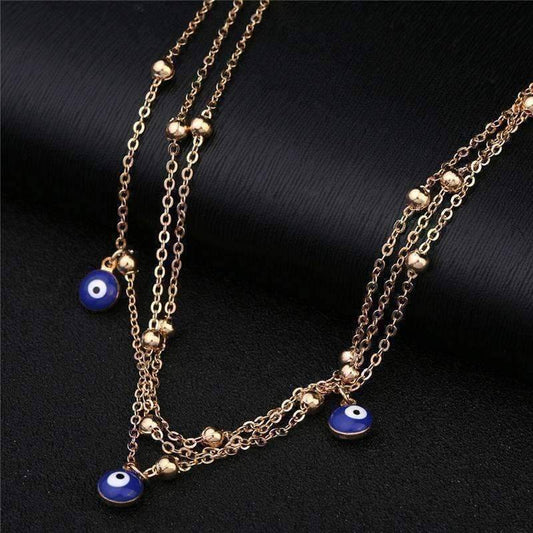 Evil Eye Layered Ankle Bracelet In Silver or Gold For Woman or Teens Casual or Beach Wear