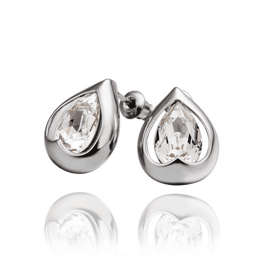 Exaggerated Silver Heart Purple Zirconia Earrings