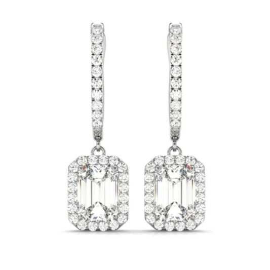 Fae 1.06CT Emerald Halo OB Simulated Diamond Earrings – Bridal, Engagement, Wedding, Anniversary Gift for Women
