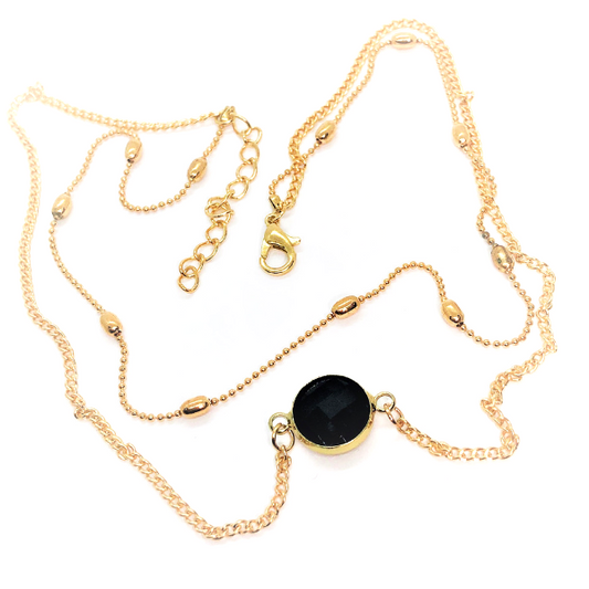 Faceted Black Crystal Layered Choker Necklace for Women