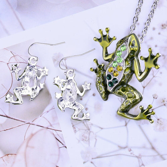 Fabulous Frog Enamel & CZ Necklace & Earrings Set for Woman