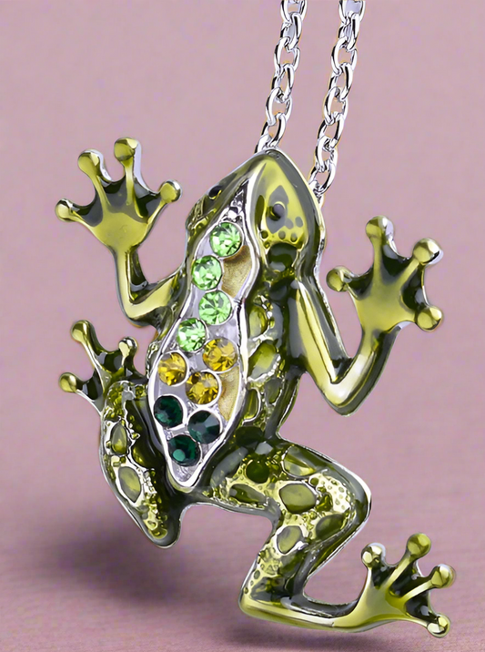 Fabulous Frog Enamel & CZ Pendant Necklace for Woman
