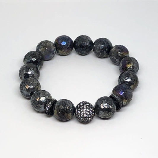 Faceted Natural Labradorite Stretch Bead Bracelet for Women