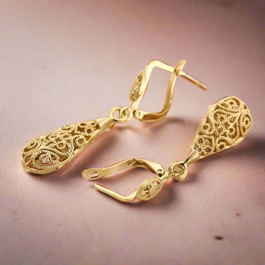 Exquisite Arabesque Filigree Puff Teardrop Gold Earrings for Women