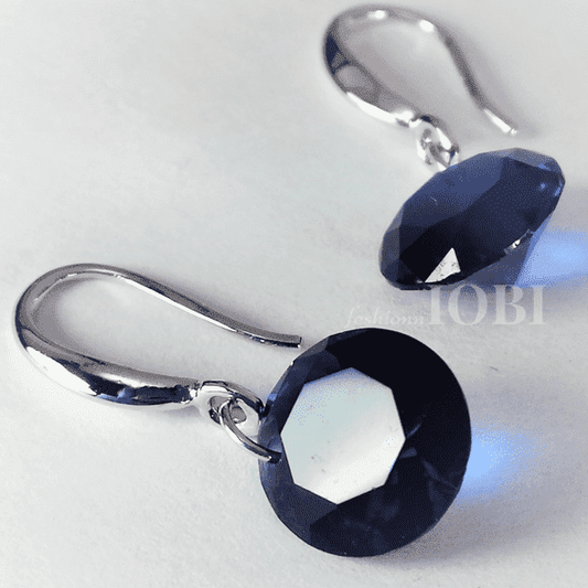 Exotic Sapphire Naked IOBI Crystals Silver Drill Earrings - 10mm for Woman