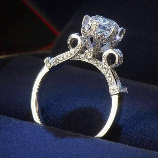 Extravagant Sterling Silver 1 Carat Crown Set CZ Solitaire Engagement Ring for Women