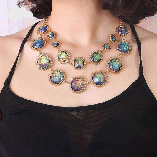 Exotic Peacock Iridescent Cabochon Layered Necklace and Earrings Set