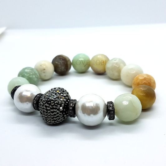 Faceted Genuine Amazonite Stretch Bead Luxurious Bracelet