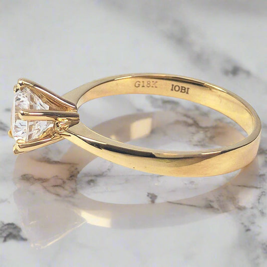 Nessa 1CT Round Simulated Diamond Solitaire 18K Yellow Gold Ring for Women