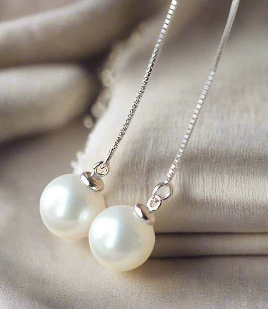 Naked Pearl Silver Box Chain Thread Earrings for Woman