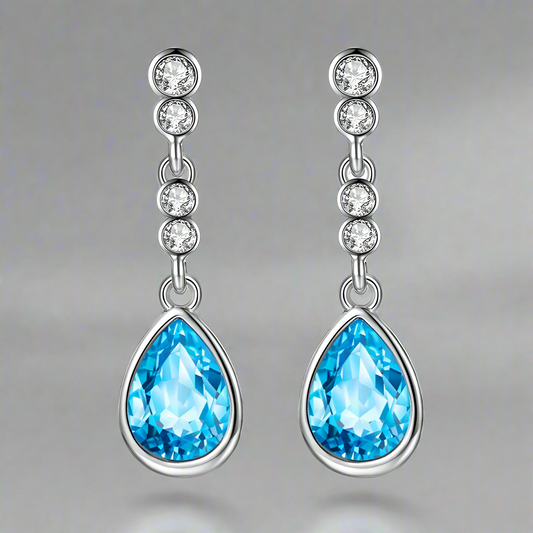OB Crystals 14K White Gold plated Dew Drop Earrings for Woman Special Occasion Black Tie Holidays Birthdays