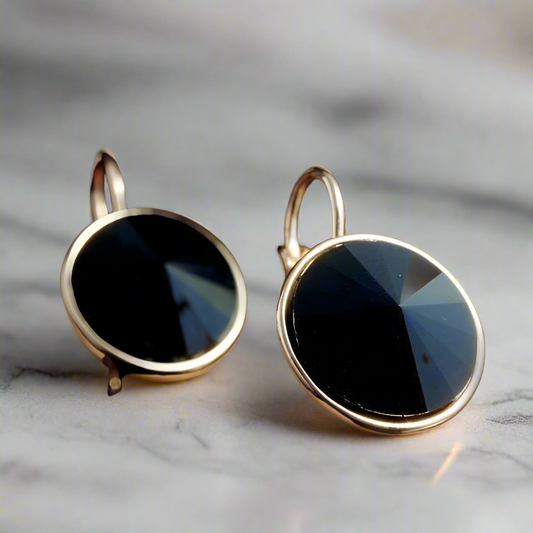 Obsidian Black Dome Austrian Crystal Lever Back Earrings for Women