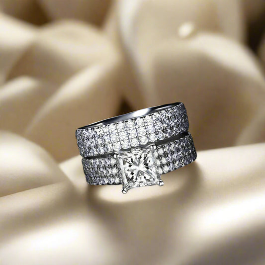 Odette 1.50CT Princess Cut Pavé Wedding Band Set OB Simulated Diamond Rings for Women Bridal Wedding Engagement