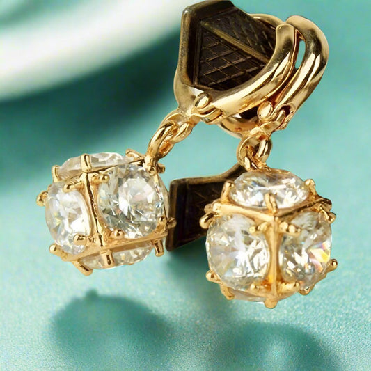 OB Crystal Cube Dangling Charm 14K Gold Plated Earrings for Woman Special Occasions Bridal and Prom Accessory
