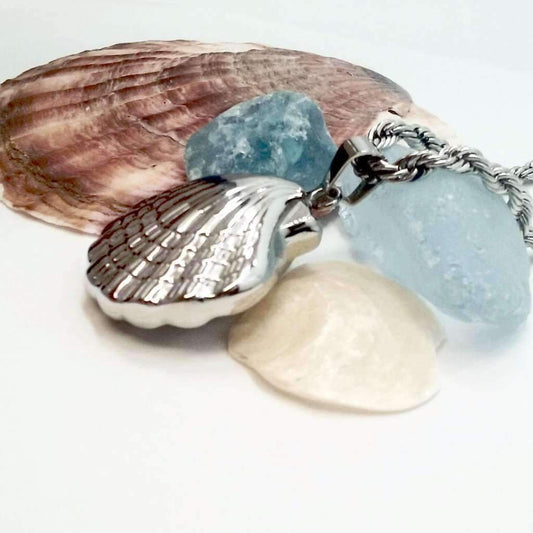 Oceanside Stainless Steel Puffed Clam Shell Pendant Necklace