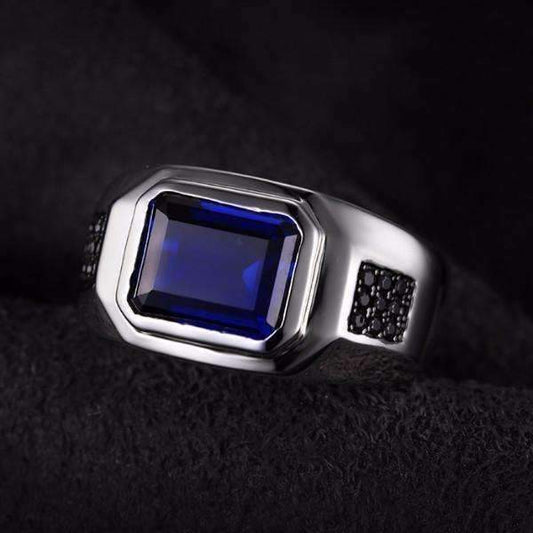 Octavius 4.3CT Emerald Cut Swiss Blue Sapphire IOBI Precious Gems Men's Ring