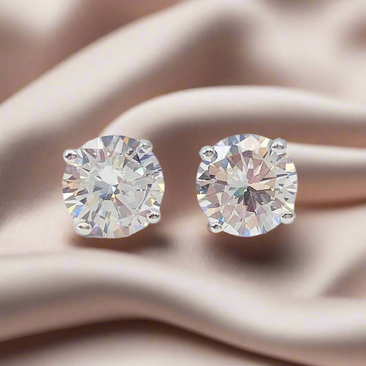 Opulence Round OB Simulated Diamond Solitaire Sterling Silver Platinum Plated Stud Earrings for Women Engagement Bridal Wedding Anniversary Gift