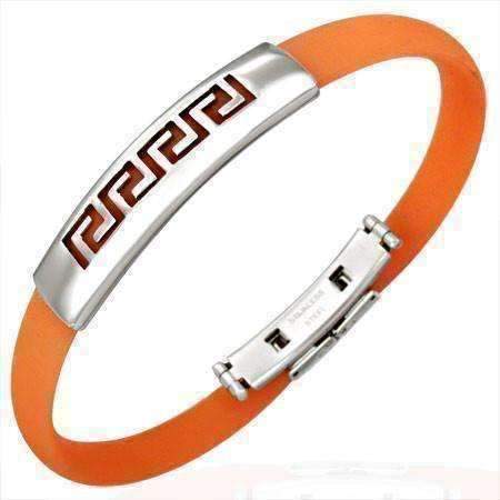 Orange Band Silicone Bracelet with Stainless Steel Cut Out Designs ~ Choose Your Design