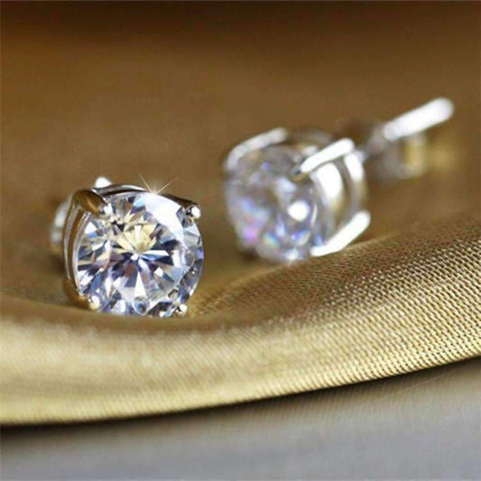 Opulence 14K White Gold Round OB Simulated Diamond Solitaire Stud Earrings for Women Bridal Enegagement Wedding Gift