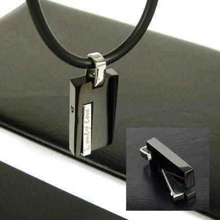 Only Love - Sleek Black Stainless Steel CZ Accent Pendant Necklace