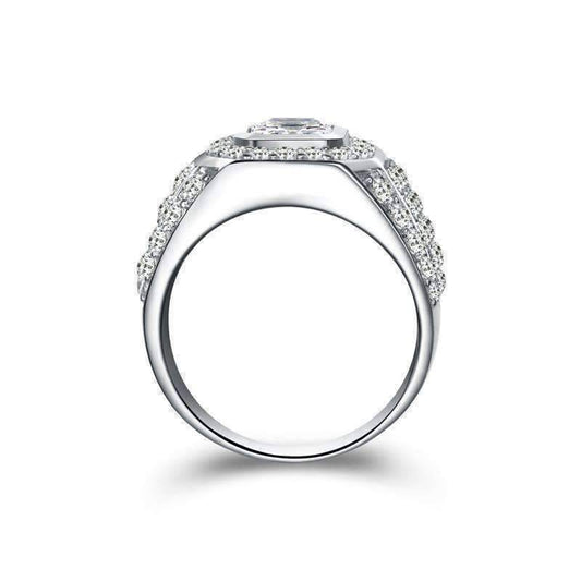 Osiris 2.5CT Emerald Cut Pavé Bezel Set OB Simulated Diamond Men's Ring Gift