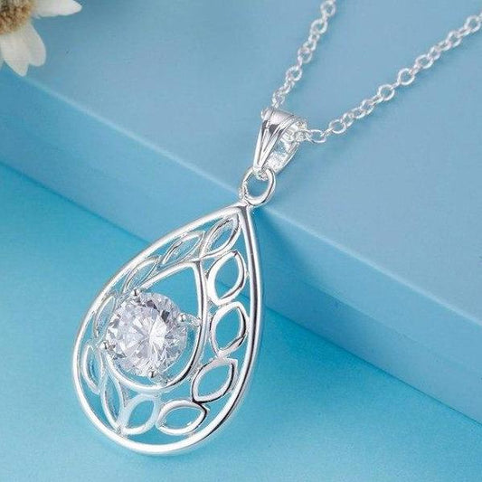 Ornate Pear Drop CZ Sterling Silver Necklace