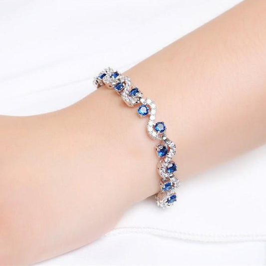 Petite 14K White Gold Plated Sapphire Blue Waves CZ Diamonds Small Wrist Tennis Bracelet for Women Special Occasion