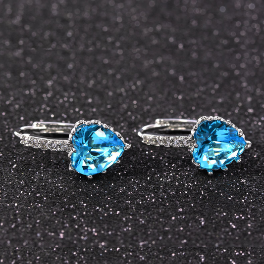 Petite Heart Shaped Aqua Austrian Crystals Hoop Earrings