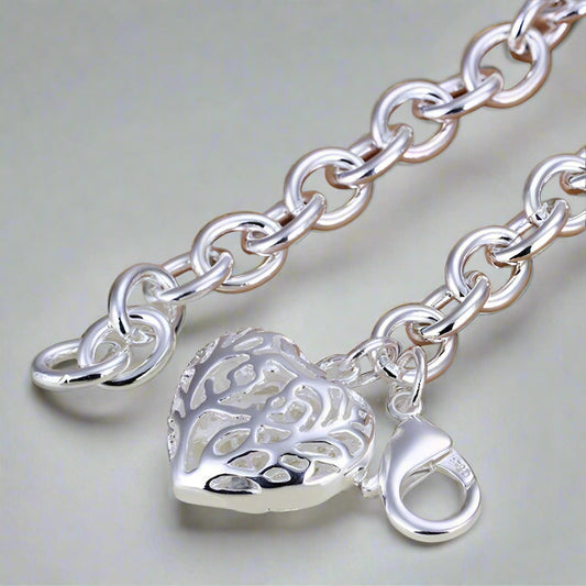 Petite Fancy Silver Puffed Heart Charm 7.5 Inch Adjustable Bracelet for Women Special Occasion Everyday Wear